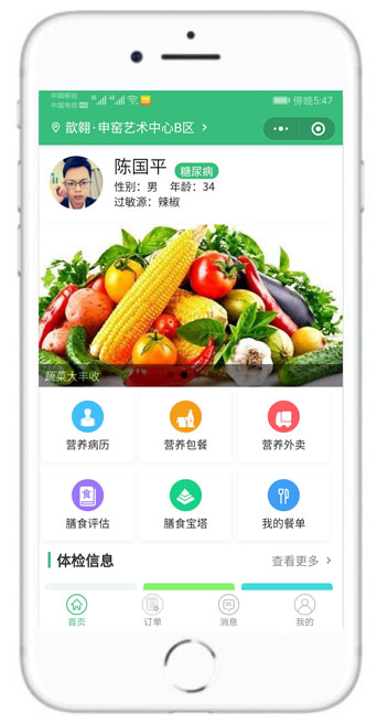 外賣/餐食預(yù)訂、連續(xù)包餐預(yù)訂、每日餐單展示、飲食記錄、營養(yǎng)健康檔案以及與營養(yǎng)師在線互動等功能